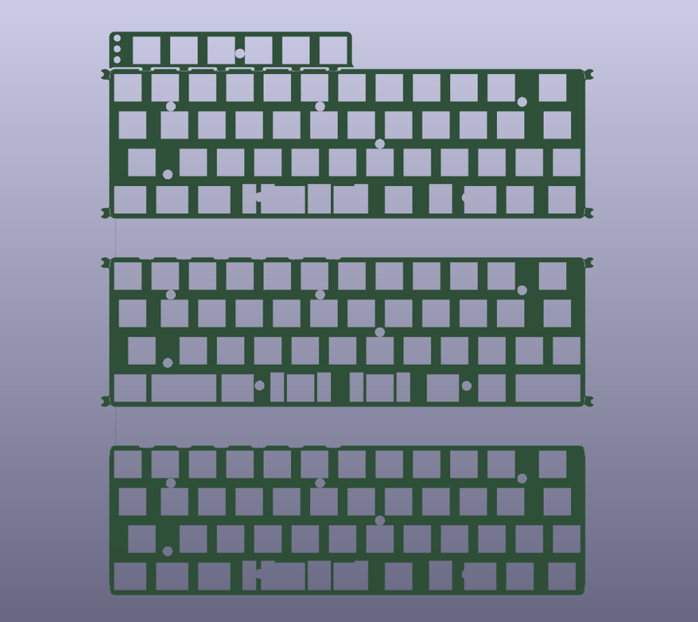 The Hybrid plates (Diesel, Jet, and Steam) (Color: Black) support their respective Monorail layouts, and are compatible with R3 V4N cases, Hull-mount Minivan cases, and Tray-mount Minivan cases. The half-numrow is removable, as well as the Hull mounting points. (The Hybrid plates are green in the render)